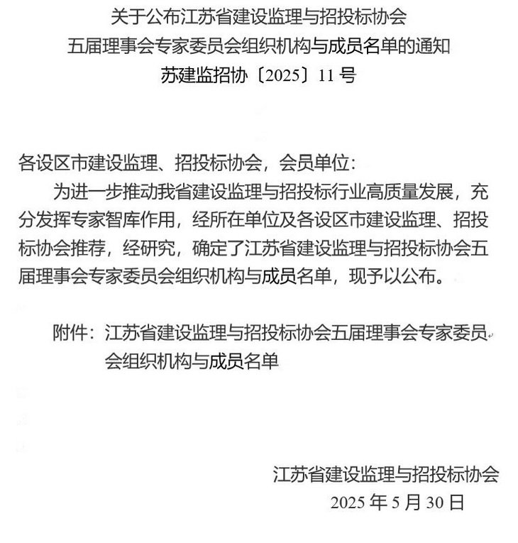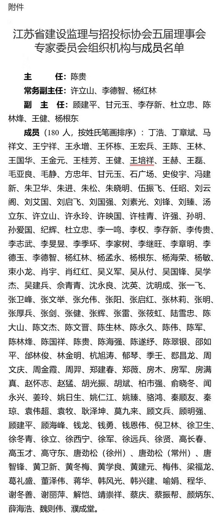 公司总经理王培祥入选江苏省建设监理与招投标协会五届理事会专家委员会